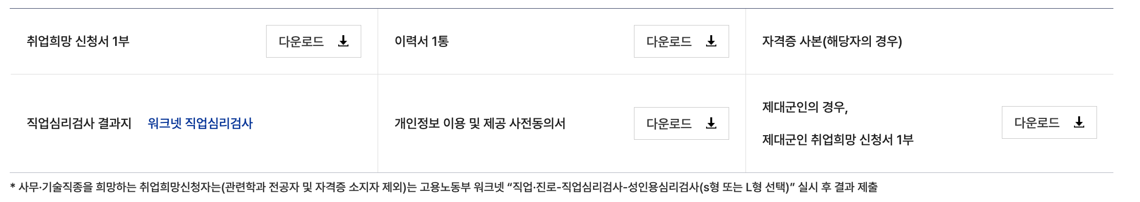 취업희망 신청서 제출