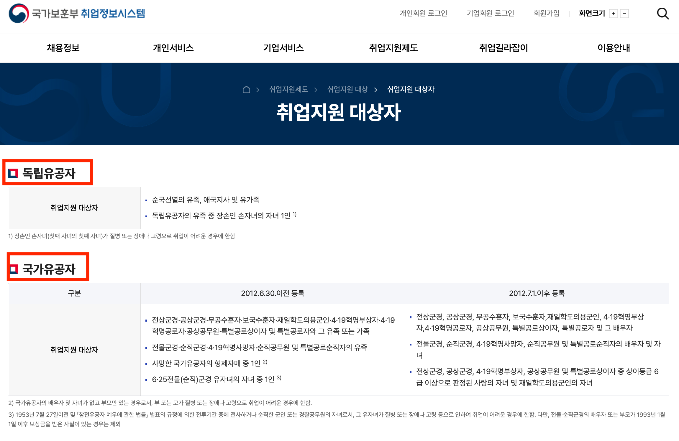 국가보훈부 취업정보시스템