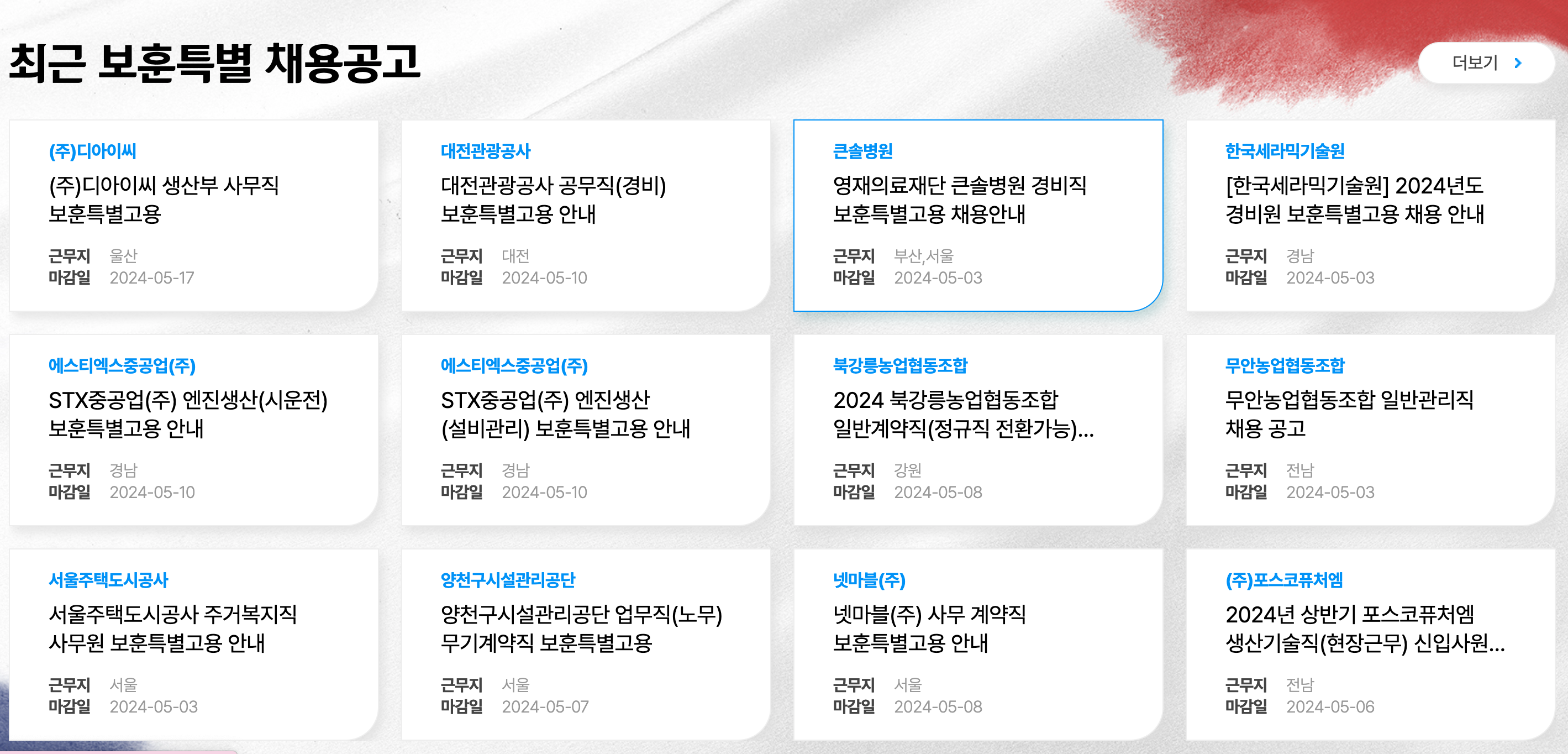 오늘은 국가보훈부 취업지원시스템에서 보훈특별채용공고에 대해 알아보았습니다.