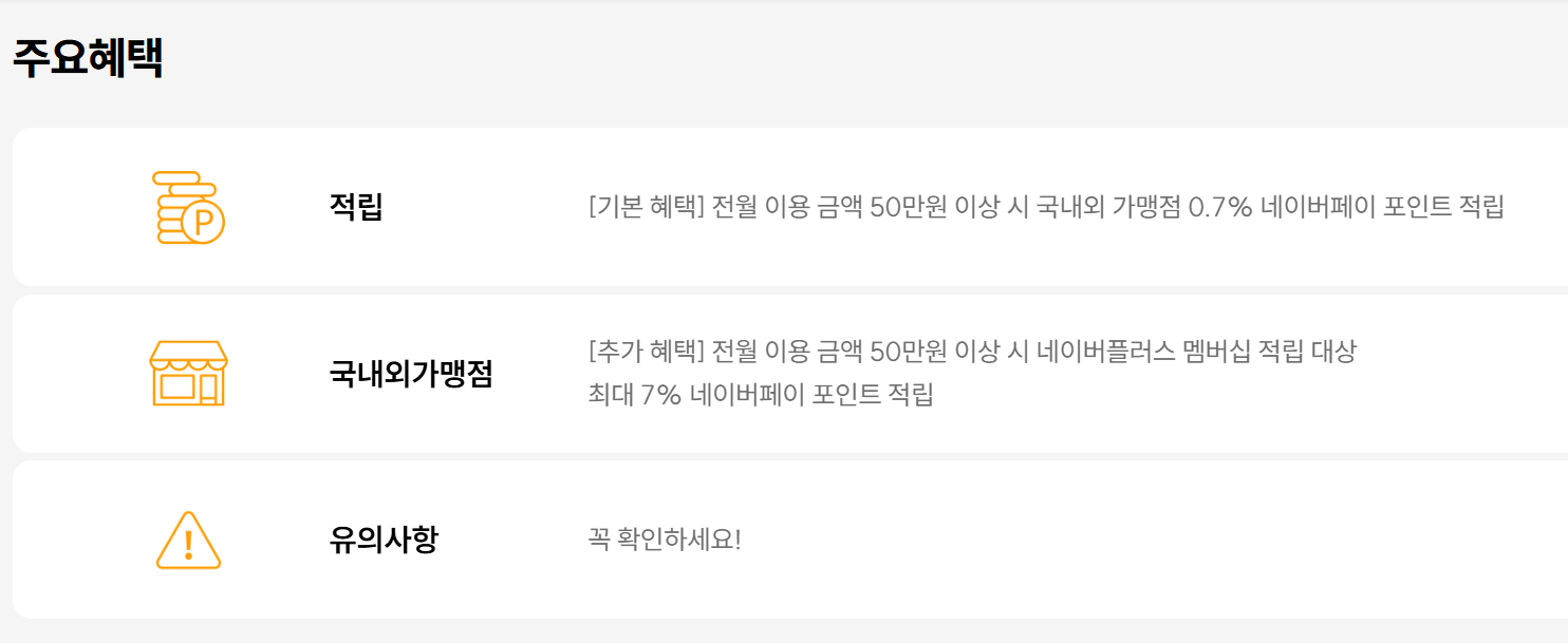 | 특징 | 모든 가맹점에서 네이버페이 적립 | 네이버 쇼핑 혜택 강화 |