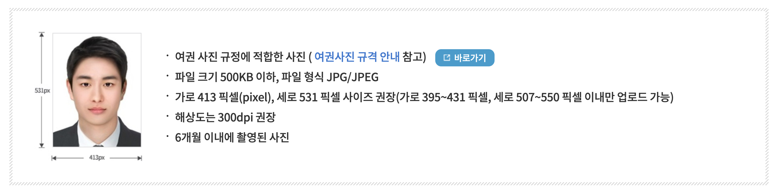 여권용 사진 파일 규격에 맞지 않는 경우 신청이 진행되지 않거나 반려될 수 있음