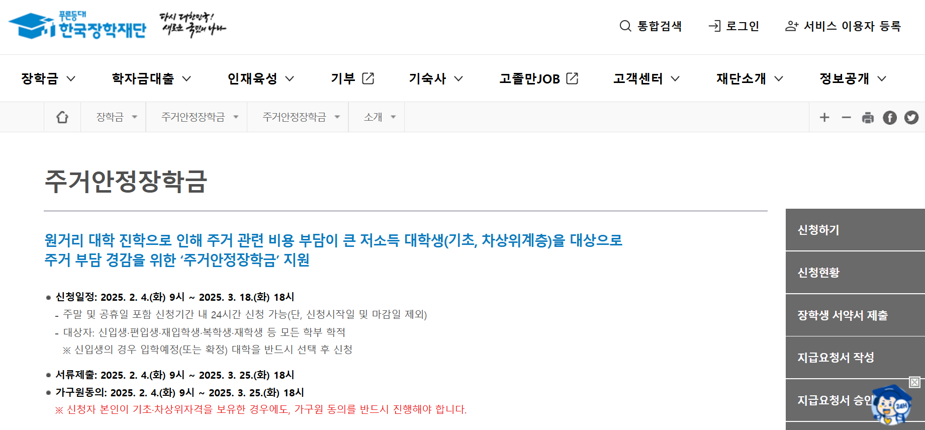 주거안정장학금 신청 방법 및 절차